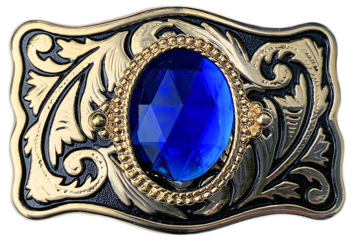 Western Belt Buckle Gold Black Blue Stone Cabochon